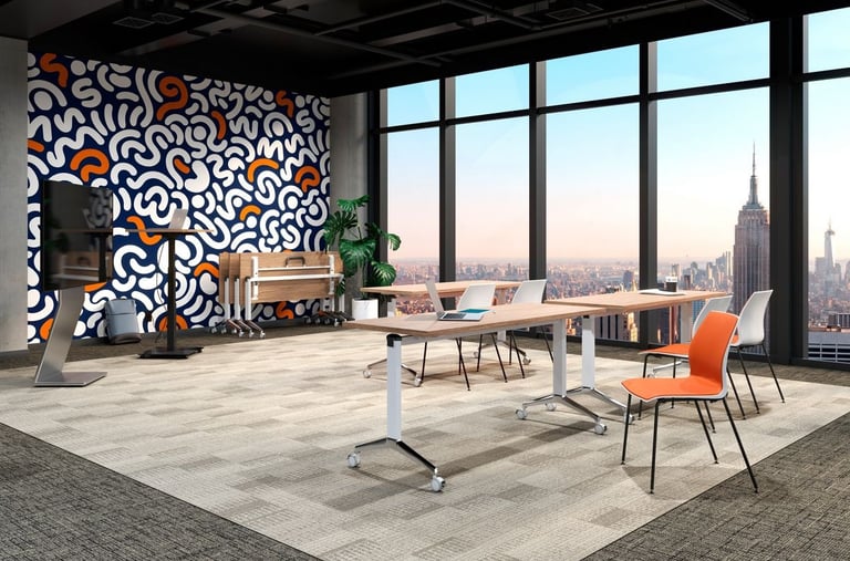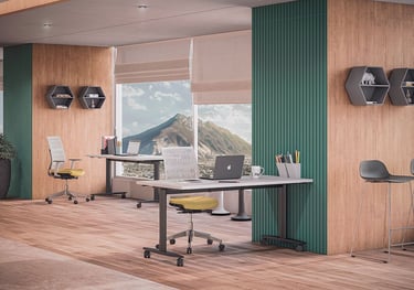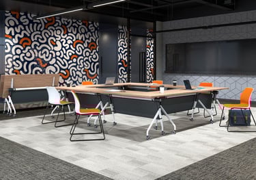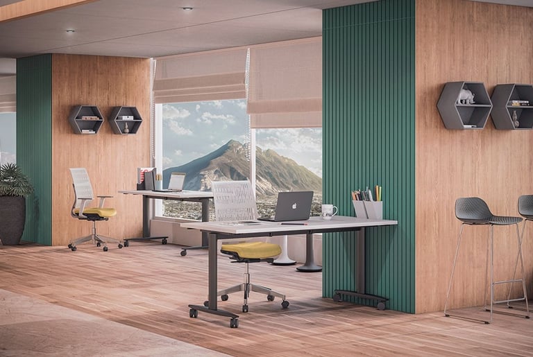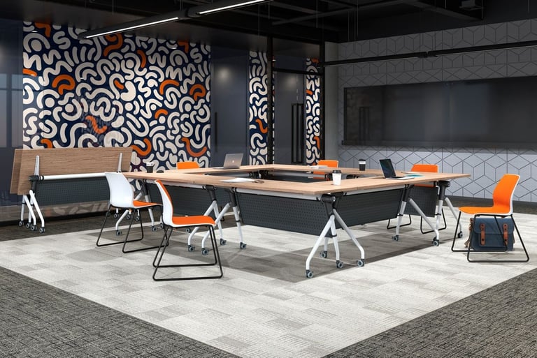 Estructuras con diseños versátiles que las convierten en mesas compactas para áreas de formación, mismas que pueden cambiar y adaptarse a las dimensiones del espacio de forma rápida y sencilla para atender las exigencias que surgen de manera constante en el entorno.