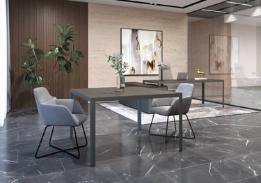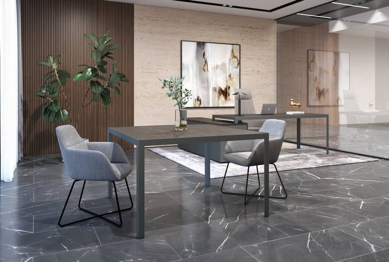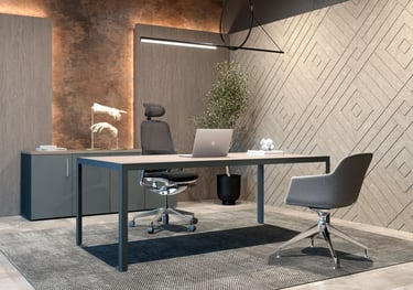 Una línea de origen italiano que se define por su diseño arquitectónico y cuadrado, estéticamente refinada y seleccionada para satisfacer la creciente necesidad de estructuras que ofrezcan generosas configuraciones, adaptable desde escritorios direccionales hasta mesas de reuniones pequeñas o aquellas de tamaño imponente, posee la virtud de contar con patas electrificables para aumentar su funcionalidad.